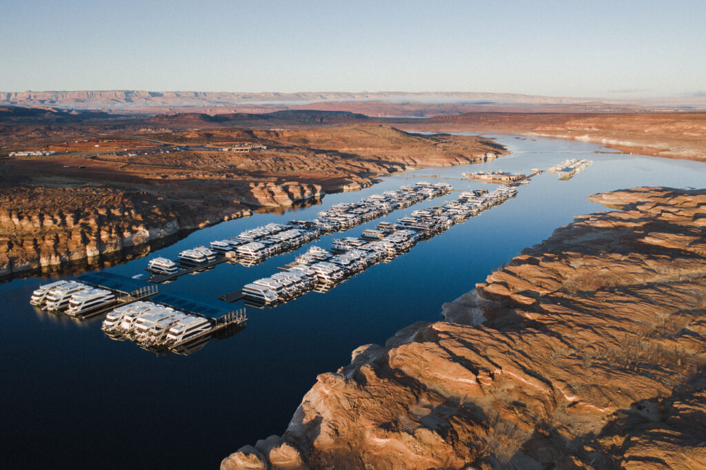 Antelope Point Marina sits along a deep-water channel with consistent access.